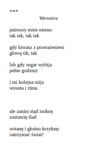 @Migrena Poetycki język, pełen sugestywnych obrazów i głębokiej symboliki, sprawia, że jest to lektura wymagająca, ale satysfakcjonująca dla czytelnika poszukującego w poezji czegoś więcej niż tylko ładnych słów. To wiersz, który zostaje w pamięci na długo po przeczytaniu, zmuszając do refleksji nad własnym "jestem"