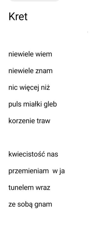 @Leszczym Drogi Leszczym 🙂 , po raz następny zachęcam Cię do tworzenia i publikowania dłuższych, bogatszych w treść form 🙂 . Serdeczne pozdrowienia.1 punkt