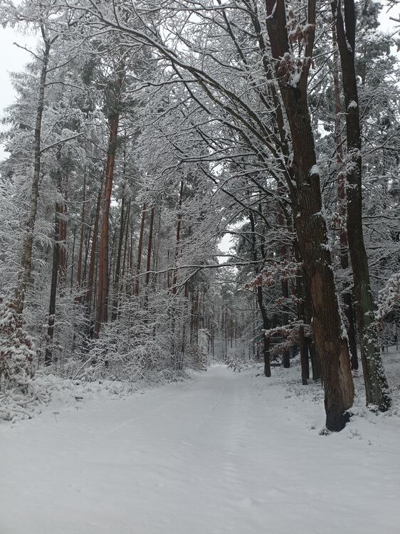 Biały puch na przedwiośniu zaskoczył radośnie, gdy szarzyzną zmęczona już ziemia. Drzewa pięknie przyodział - tylko zmarznięta woda, a tak wiele w chwil kilka zmienia. Krzewy iskrzą srebrzyście choć brak na nich liści, wyglądają niezwykle uroczo. Śnieżek skrzypi pod butem, uśmiech przyniósł nam luty. Znów pomysły pod czapką się tłoczą. Dziękuję za inspirację @Manek:-)1 punkt