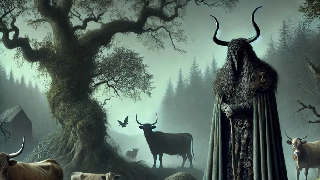 Głębiej pod nami, tam gdzie korzeń pęka, wyznaczony czas nurtem rzeki spływa. Czeka Pan Cieni, bóg o mocnych rękach, co każdą duszę po imieniu wzywa. To on jest mrokiem, co schronienie daje, w jego całunie śpi każde wspomnienie. Pasterz mglistych stad przemierza rozstaje, W jego spojrzeniu drży świata istnienie. Strzeże on wejścia w mroczne zapomnienie, gdzie dusz korowód brodzi w gęstych toniach. Władca rozkładu kładzie martwe cienie, klucz do wieczności trzyma w silnych dłoniach. Ludzie się chylą w lękliwym pokłonie u stóp jesionu, gdzie woda wycieka. Wzywają tego, co siedzi na tronie, gdy wrota Nawii chłoną już człowieka. Próżny jest ten lęk - powrót w mroczne strony, do Pana, który poi ich milczeniem. Świat w jego dłoniach spocznie uciszony zrosły z niebytem i wieczności cieniem. Słowiański panteon zamieszkują bogowie, którzy sprawowali pieczę nad różnymi aspektami życia i natury. Jednym z najbardziej tajemniczych i jednocześnie ważnych bóstw był Weles, bóg zaświatów, dusz zmarłych oraz opiekun bydła. Jego postać odgrywała kluczową rolę w życiu codziennym Słowian. Nawia - w wierzeniach słowiańskich oznaczała zaświaty. To właśnie tutaj przybywali zmarli. Ilustracja - ze strony int. JuraPark Bałtów.10 punktów