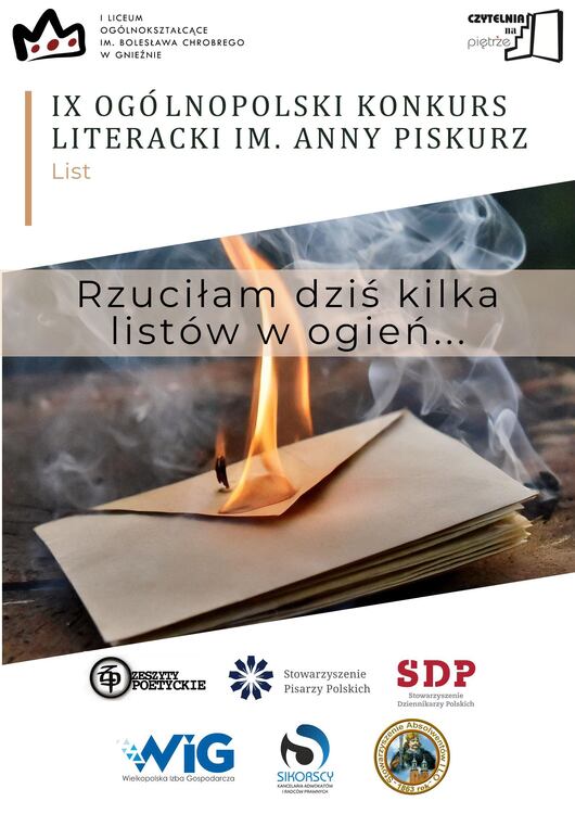 Na prośbę organizatorów, publikujemy informację o konkursie: Już tylko do 10 września można zgłaszać swoje utwory do IX Ogólnopolskiego Konkursu Literackiego im. Anny Piskurz. To wyjątkowa okazja, by młodzi autorzy z całej Polski zaprezentowali swoją twórczość i zmierzyli się z hasłem przewodnim tegorocznej edycji, zaczerpniętym z twórczości Patronki: „Rzuciłam dziś kilka listów w ogień…”. Zadaniem uczestników jest napisanie listu – literackiej interpretacji tego motta. Prace oceni znakomite grono ekspertów: Dawid Jung, redaktor naczelny „Zeszytów Poetyckich” (przewodniczący Jury), Joanna Gronikowska, Dyrektor Biblioteki Publicznej Miasta i Gminy Witkowo, Irmina Kosmala, redaktor naczelna „Kuźni Literackiej” oraz Igor Frender, członek Stowarzyszenia Pisarzy Polskich i Unii Literackiej. Sekretarzem i koordynatorem konkursu jest Aleksander Sieniuć. Konkurs skierowany jest do uczniów szkół ponadpodstawowych (z wyłączeniem studentów i słuchaczy szkół policealnych). Każdy uczestnik może przesłać tylko jeden tekst, wcześniej nigdzie niepublikowany i nienagrodzony. Utwór należy przygotować w pliku pdf, doc lub docx, czcionką Times New Roman 14 pkt, interlinia 1,5 (do 10 tys. znaków ze spacjami). Praca musi być podpisana godłem (pseudonimem), a dane osobowe, zgody i informacje o szkole lub opiekunie należy wysłać w osobnym pliku. Zgłoszenia przyjmowane są do 10 września 2025 r. na adres: [email protected]. Na zwycięzców czekają nagrody finansowe, rzeczowe oraz dyplomy, a autor najlepszego utworu otrzyma 1000 zł i publikację w „Zeszytach Poetyckich”. Wszystkie nagrodzone i wyróżnione listy zostaną również wydane w formie ebooka. To ostatni moment, by pokazać swój literacki talent i znaleźć się w gronie twórców, których głos wybrzmi podczas uroczystej gali finałowej w listopadzie! Szczegóły: https://www.1lo.gniezno.pl/userfiles/files/20250609-Regulamin%20IX%20Og%C3%B3lnopolskiego%20Konkursu%20Literackiego%20im.%20Anny%20Piskurz.pdf -