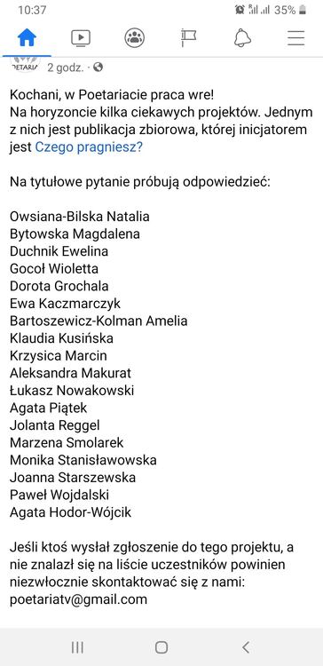 Hejka. Udało mi się dostać do Antologii jeszcze dokładnie nie wiem kiedy wychodzi ale będę was w tym wątku informował. Chciałbym wam wszystkim podziękować bo to dzięki wam na tyle się wyrobiłem w pisaniu że już tak bardzo moje potworki nie straszą. A więc lista jest długa bo to już prawie 4 lata tutaj pisze ale dziękuję @beta_b, @Oxyvia, kot szarobury, @Leszczym, Alicja Wysocka, Marllet, @jan_komułzykant, Czarek, Andrzej, Krzysztof i cała masa innych osób :)