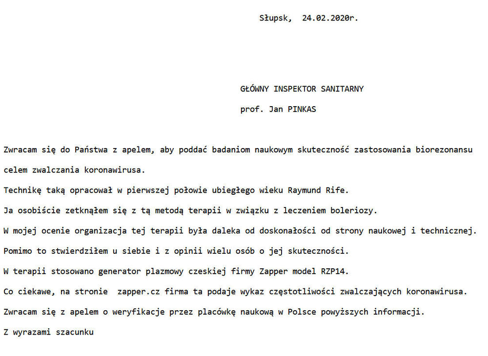 A co na to profesorowie i doktorowie? Fragment z odpowiedzi na moje zapytanie o biorezonas skierowanego do Polskiego Towarzystwa Wirusologicznego w Lublinie: Dziękuję za przesłane informacje ale pragnę jeszcze raz podkreślić, że Polskie Towarzystwo Wirusologiczne nie zajmuje się biorezonansem. Biorezonans jest metodą stosowaną przez medycynę alternatywną o jak dotąd niepotwierdzonej naukowo wartości diagnostycznej i leczniczej, oraz skuteczności nie większej niż placebo. Nikt, o ile mi wiadomo, nie opublikował wiarygodnych wyników badania wpływu biorezonansu na koronawirusa, więc nie jestem w stanie odpowiedzieć na zadane przez Pana pytanie. Badania naukowe wymagają znacznych nakładów finansowych więc sugeruję aby poszukał Pan osób zainteresowanych prowadzeniem sugerowanych przez Pana doświadczeń i wspólne aplikowanie do Narodowego Centrum Nauki o przyznanie środków finansowych na ich realizację." Nauka w służbie narodu! Jest pięknie. To tak jakby Polskie Towarzystwo Ortopedyczne i Traumatologiczne ograniczało swoje zainteresowania tylko do prawej nogi pomijając lewą nogę.