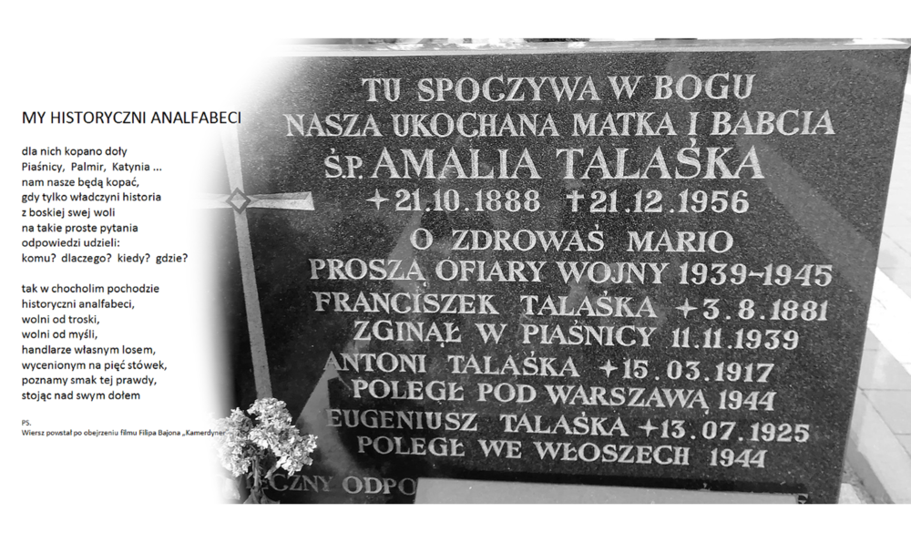 Czytałem Twój tekst z ogromną przyjemnością >-) Brawo! Pokażę te linie nad którymi bym jeszcze trochę popracował: Urwiska pełne od tych Co najbardziej chcieli żyć (tu razi "co") Nikt nie chce nikim być (tu tylko szyk nikim-być) Albo nietypowi my Najmniej Cię mam Kochanie, wciąż Cię szukam po klawiaturze. A w tym fragmencie traci się gdzieś zawarta tu myśl: Przez jeden konflikt Cierpi tysiące ludzi Gdy świat się ugnie Komuś pod jedną liną Gdzie giną ludzie O których nikt usłyszy Nie będę się mądrzył co robić. Ty to zrobisz najlepiej:-) Pozdrawiam:-)