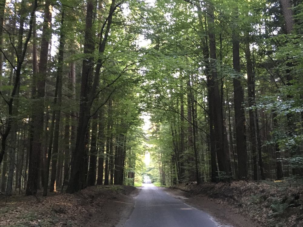 4. Jest takie miejsce na globie ziemskim, gdzie droga co dzień me kroki wita, ze wzajemnością więc odpowiadam drzewom szumiącym przejrzystym świtom. Szara wstążeczka wijąc się płynie poprzez rezerwat i Stawy Echo za Rybakówką odbija skrętem patrzę na domy z tkliwym uśmiechem. Po obu stronach zielonej drogi dumnie się wznoszą świerki i sosny, a modre liście dębów i buków tworzą nade mną baldachim wiosny. W dziurawym dachu skrętów gałęzi toń lazurowa, błękitu wstęga strugami czasu upływ dni głaszcze, me leśne szczęście, droga niezmienna. 22.07.2018r.