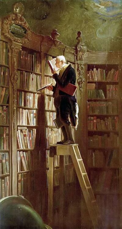 (Carl Spitzweg - Mól książkowy) Do bibliopola co z Opola ze Środy w środy jeździł stolarz. Chłonął lektury, jak mało który. Wchłonąl aż sto ich do jabola. ___ 9 sierpnia obchodzimy Dzień Miłośników Książek