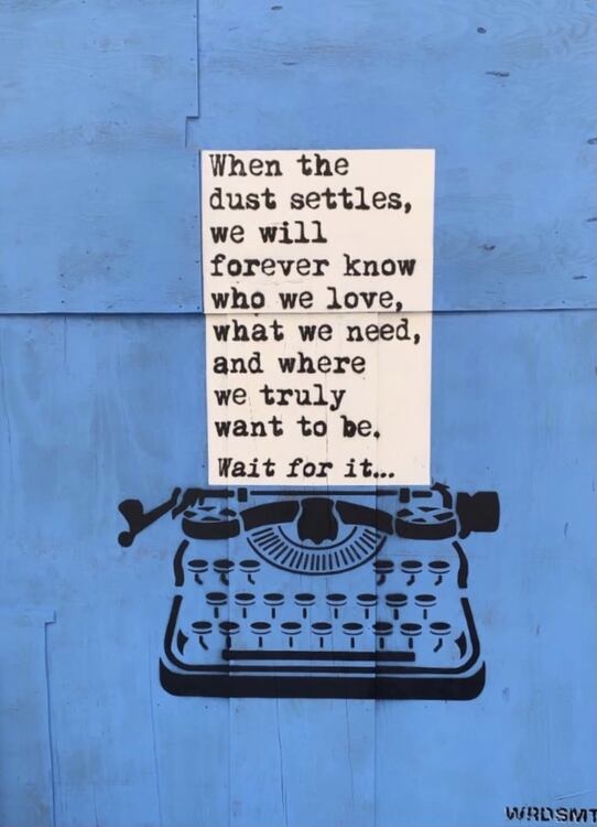 @Max Tak, nie wiemy - może i tak lepiej? @emwoo Dzięki, Madziu. Ten cytat i fotka to dzieło naszego lokalnego mural-artysty (WRDSMTH) i można je znaleźć na mieście, zawsze pobudzają do myślenia. Uwielbiam je i na pewno będę jeszcze wrzucać. Miłego tygodnia :) Tak, czekanie najczęściej jest pułapką i uśpieniem. Niech świat się śmieje, Ty też Michaś; nawet fałszywy uśmiech redukuje kortyzol - natura daje się nabierać ;) Pozdrawiam! @tetu Bardzo ładnie mi napisałaś, Tetu :) Dziękuję!