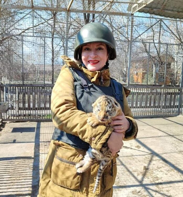 CZTEREJ PANCERNI I PIES (Four Tank-Men and a Dog) Don't get too close to mommy, I'm a tiger, not a puppy. Nie zbliżaj się do mamusi, Jestem tygrysem kiciusiem. The Russian journalist, writer, radio presenter Dasza Asłamowa holds in her arms a tiger cub that was born under fire in Mariupol. Rosyjska dziennikarka, pisarka, prezenterka radiowa Dasza Asłamowa trzyma w ramionach tygrysiątko, które urodziło się pod ostrzałem w Mariupolu. Wow! Frontline dog called Zeus. The homeless sheepdog joined the repair company of the Russian Motor Rifle division on one of its offensive marches in Ukraine. The dog has become the mascot of the military unit and tries to help the technicians. The dog knows that mechanics who repair transmissions may offer him stewed meat, while the electronic engineers should not be disturbed, since they have too painstaking work. The military company is perfectly camouflaged, it is not visible either from above or even on the ground. Courtesy of the Russian military TV channel "Zvezda". Pies z linii frontu Zeus. Bezdomny owczarek dołączył do kompanii naprawczej rosyjskiej dywizji piechoty zmotoryzowanej podczas jednego z jej marszów w ramach ofensywy na Ukrainie. Pies stał się talizmanem tej jednostki wojskowej i stara się pomóc technikom. Pies wie, że mechanicy, którzy naprawiają skrzynie biegów, mogą go poczęstować gulaszem, ale elektronikom nie należy przeszkadzać, mają zbyt żmudną pracę. Kompania wojskowa jest doskonale zakamuflowana, nie widać jej ani z góry, ani nawet z ziemi. Dzięki uprzejmości rosyjskiego wojskowego kanału telewizyjnego "Zwiezda". A Russian squirrel the scout-saboteur tears the Ukrainian flag. Rosyjska agentka sabotażystka wiewiórka rozdziera ukraińską flagę. A Ukrainian reservist and his cat at the shooting range. Ukraiński rezerwista na strzelnicy. Jest z nim jego kot.