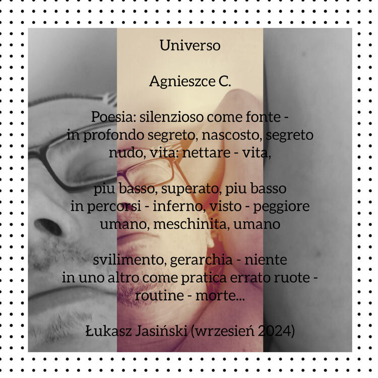 1. @Jacek_Suchowicz Większość aktywnych osób na tym portalu wie, iż jestem pogańskim racjonalistą - libertynem i intelektualnym biseksualistą - uniwersalnym, wierzę tylko i wyłącznie Świętej Matce Natury, a Jezus Chrystus był człowiekiem - filozofem uniwersalnej miłości, sugeruje pan, panie Jacku, iż na tym portalu piszą niepełnoletnie dzieci, aby jakiegoś naiwnego człowieka złapać na pedofilię i szantażować go? Wątpliwe... Dzieci tutaj nie publikują - to dla nich za trudne, dodam: dzięki mnie wiersz pani Laury zdobył pomarańczową ramkę z mottem: Gorący Temat! Łukasz Jasiński