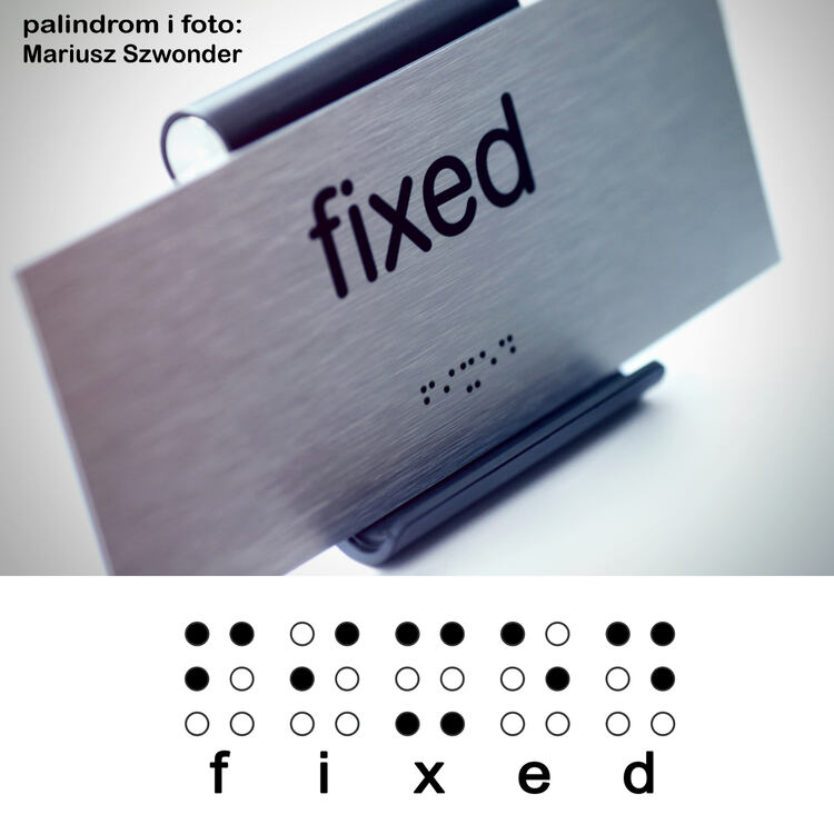O tym, że możliwe jest czytanie palindromów opuszkami palców w systemie alfabetu Braille'a, pisałem w książce "Pomału żaba żuła mop" (2023). Zapraszam do rzucenia okiem na zupełnie nową odsłonę tego tematu - tym razem udało mi się stworzyć palindrom w języku angielskim. Jakże symboliczny: oto wiele można naprawić. Pozdrawiam