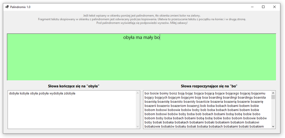 Napisałem program ułatwiający pisanie palindromów.