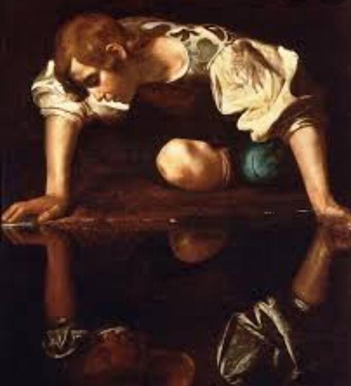 2. W lustrze wody odbicie doskonałe proporcja zachowana Ucieleśnienie pychy, bóstwa, które w samozachwyt wpada. Jakże mu mało doznań że świata Niezrozumiany głowę wciąż chyli, pocieszenia w swym policzku szuka Powiekę przymyka Zuchwałość rozsadza Droga to żmudna im dłużej spogląda serce twardnieje Jak groch pęcznieje dumne bo takiego Pana posiada Istota szalona kochać nie potrafi Wyjść z własnych granic Kroku nie postawi Szczelnie zawinął umysł przed gapiami Którzy poczwarę w nim odnajdywali.