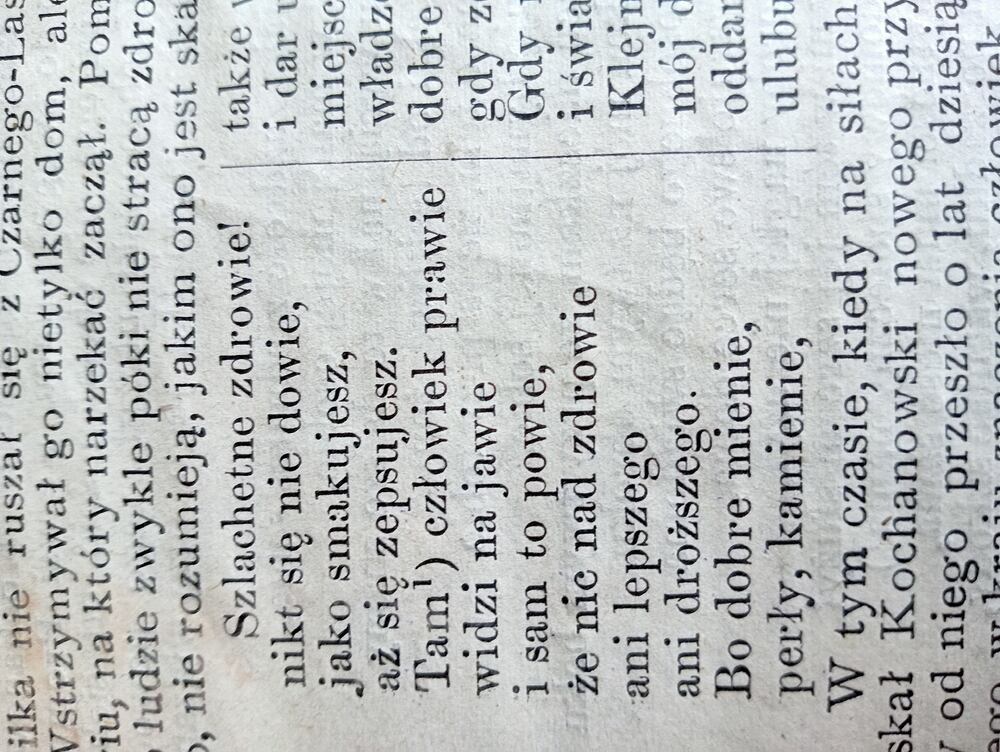 I cóż by rzec na tę okoliczność mógł rzec mistrz Jan: Warszawa, Księgarnia Krajowa K.Prószyńskiego 1884. A czym to ślachetne zdrowie? Co miał na myśli poeta? Czy miał być to brokuł na parze? Znowu wie to cis-kobieta ;) Pzdr 🌼