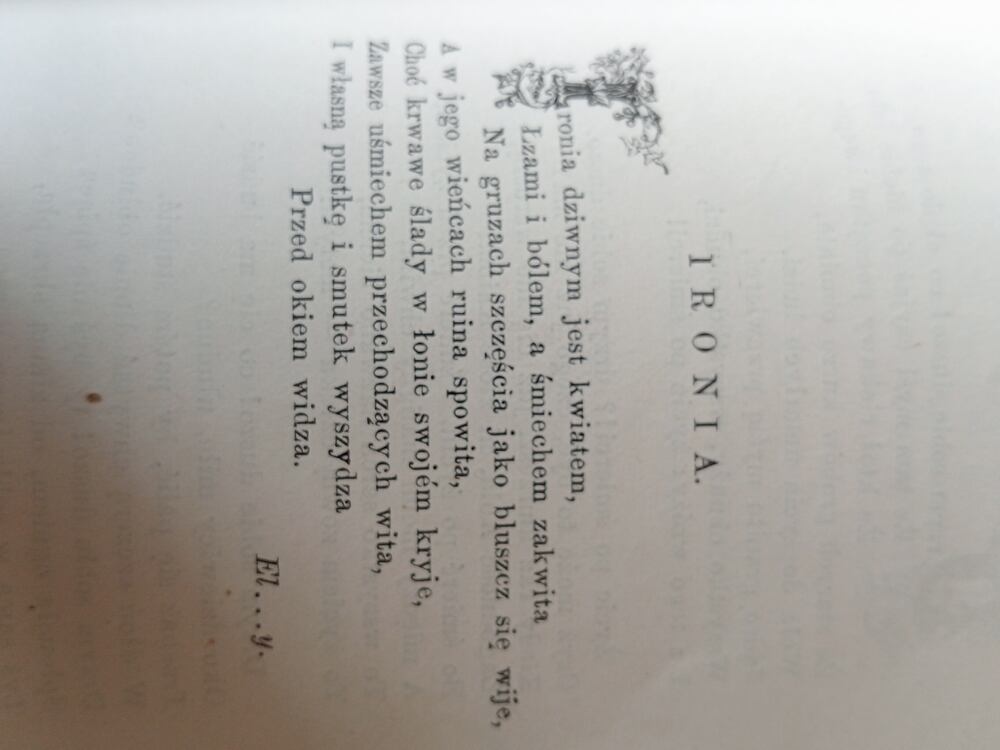Też tak myślę. A Ty tu mnie chyba jedna z pierwszych przywitałaś, dziękuję:) @Alicja_Wysocka Odnosząc do tych wartości, może i teraz na czasie, takie znalazłam: Kwiaty rodzinne Wybór poezji polskiej ulożony przez Narcyzę Żmichowską, W-wa…1883. Pzdr. -