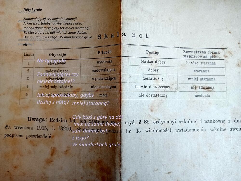 No ty i grule Zadowalającej czy niejednostajnej? Jakiej sprostałaby, gdyby dzisiaj z nótą? Jednak dostateczną czy też mniej staranną? Gdy ktoś z góry na dół miał same dwóje, był dumny sam z tego? W mundurkach grule.
