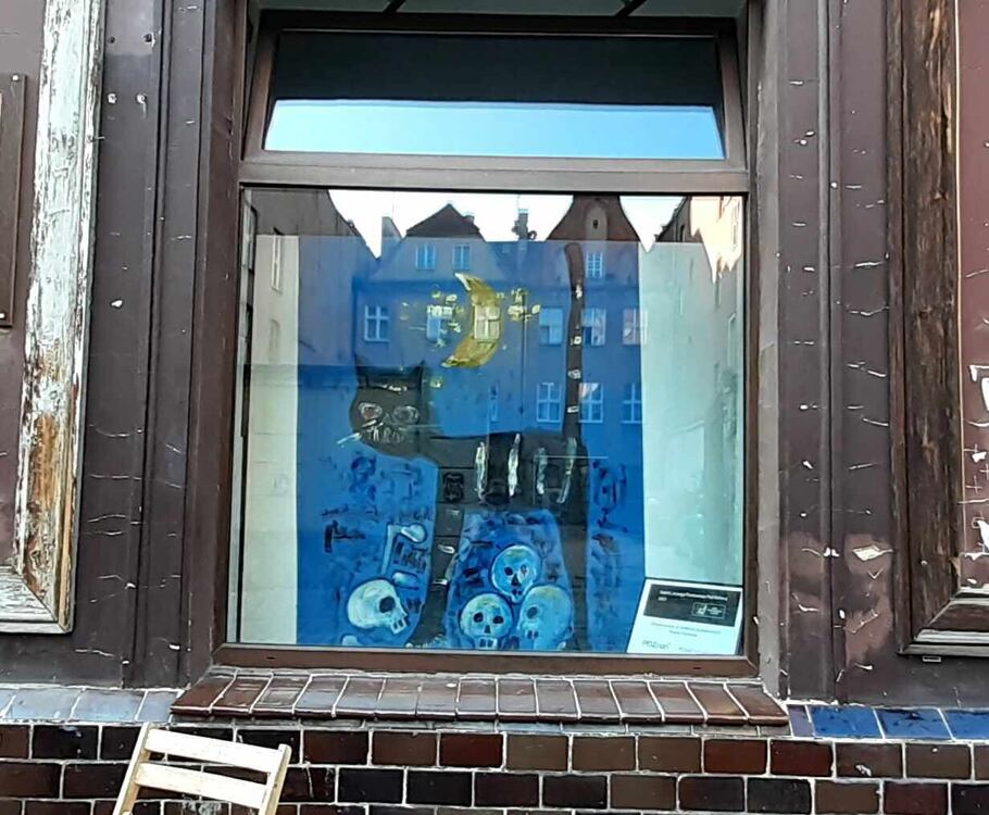 Ten czarny kot ma białe znaczniki, cztery pionowe pasy na grzbiecie, cztery poziome na ogonie i trzy na nogach, pięć dolnych zębów, nos i obwódkę zbyt dużego oka, w środku czerwonego. Jeden wibrys z prawej, dwa z lewej. Oto całe jego białe wnętrze. Dla widoku ludzkiego jest płaski. Ma dwie łapy: przednią i tylną. Wygląda tak, jakby kota ktoś sprasował wielkim, metrowym żelazkiem. Nad jego postacią wisi żółty księżyc, który jest w pierwszej kwadrze, ale możliwe też, że jest sierpem przybywającym. Ów kot, dla księżyca do towarzystwa dostał jeszcze kilka rozmazanych gwiazd, które się świecą tylko z barwy, bo z kształtu wyglądają na spadające komety. Ale zaraz, zaraz.. kto powiedział, że to jest kot? Może to kotka, która w niebo, jak w sukienkę się ubiera, żeby się nie zamykać w czerni, bieli i czerwieni. Tak, kotka wampirzyca, która pożarła cztery istnienia ludzkie, czaszki ich jak trofea leżą obok niej i pod nią. Jest na cmentarzu, albo duchy przeszłości z nią wraz pozują. Chyba, że to obraz namalowany z inną myślą. Zwiastujący święto zmarłych. Kocie drogi zaprowadziły ją tam, gdzie nikt nie odważy się pójść ciemną nocą, nawet błękitną, bo to jednak noc, choć w błękitach... A może to kotka, która lata w kosmosie w towarzystwie Griwiusów - bolesnych generałów w ilości sztuk czterech? Tajemniczy, a przecież taki prosty obrazek. Jakby go nazwać? Ktoś powiedział - bohomaz. Tym kimś byłam ja. Treść chciałam zmieścić w jednym słowie, ale nie dałam rady, wylała na boki. Teraz spod szafy spogląda, z kubka, z Internetu wypełza, z pamięci telefonu. Przeglądam raz jeszcze malowidło z galerii, zapisane pod nic nie wnoszącym numerem, bez nazwy, zupełnie nie rozumiejąc dlaczego owo słowo „bohomaz” zażyczyło sobie wyjaśnień. Nakrzywiłam się na te oczekiwania, naburmuszyłam, grzbiet wygięłam, ogon podniosłam, napuszyłam... A czemu nie skorzystać z etymologii? – pomyślałam nagle. Bohomazami zwano ikony, które malował bogorysownik. Czy ten pan z dredami, który przesiaduje czasami na drewnianym krzesełku pod odrapanymi murami swojego małego królestwa farb i sztalug zwanym galerią, nim jest? A może ktoś inny zamyka obraz energii w kocim, marcowym klimacie głośnych nocy, a potem nakłada na niego listopadowe zdobniki wiecznej ciszy umarłych. Jakby nie patrzeć wyszła z tego lipcowa ciepła noc. Noc z bohomazem.