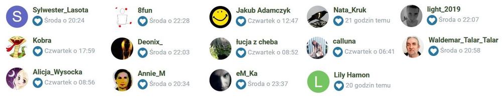 17. Tak, podmiot liryczny zwraca się też do siebie, albo np. rozmyśla sobie przy mogile kolegi, który miał "piórko silniejsze od armat", z którym rozklejał ulotki lub malował ściany. Być może też śle to do swojego dziada, ojca i innych, którzy tragicznie zginęli lub po prostu zostali oszukani, których "okradziono" nie tylko z pieniędzy. Wiem, niejeden powie, że to znowu jakieś banały, cofające jeszcze do rozbiorów, a może i do Średniowiecza. Ok. niech sobie każdy myśli jak chce. Mnie wystarczy powrót do najbliższej przeszłości stanu wojennego, bo wtedy to był imperatyw moralny, który wszystkich scalał, a dzisiaj jest wręcz wyśmiewany. I trzeba przyznać, że wielu przypadkach bywa nawet uzasadnione. Dzięki . Pozdrawiam. Witaj Alu, dzisiaj to już żadna odwaga, można pisać niemal o wszystkim - oby papier wytrzymał. ;) Bardzo dziękuję za tak miły komentarz. A wiesz, że od Ciebie cenię, bo to jak dodatkowy punkt na wyjeździe :) Pozdrawiam. Racjonalność nie zawsze idzie w parze z koniecznością działania, czasem natychmiastową, poczuciem patriotyzmu, moralności itp (co by nie przekombinować). Nie każdy też racjonalnie myślący, to pokorne cielę. To tak, jakby zapytać warszawskich powstańców, czy się opłacało. Są oczywiście takie tezy, że to była nieodpowiedzialność, a nawet głupota lub coś podobnego. Ale czy "przygoda życia"? Może tak to widzisz, inaczej na to patrzą ci, którym zniszczono życie i rodzinę, fałszywie oskarżając i skazując na śmiertelne wyroki. Zapewniam, że ktoś komu zamordowano kogoś bliskiego, przedtem pastwiąc się nad nim miesiącami, ma na to zupełnie inny pogląd. To trauma na całe życie, nie mająca z przygodą nic wspólnego. Obawiam się, że racjonalizator MacGyver też by mógł nie podołać. Dziękuję @Lahaj, pozdrawiam. Dziękuję. Kłaniam się.