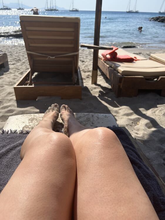 Fajnie się opaliłam, jak cudnie:) dzisiaj było 32, wspaniale, woda wszędzie idealna:) wieczorem mocno wieje:) nie słucham mediów, bo głupoty nadają:) tu życie jest spokojne, bez wariactwa, młodzieżowe miasteczko:) Grecja to jest to;)