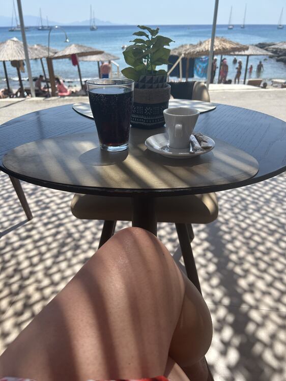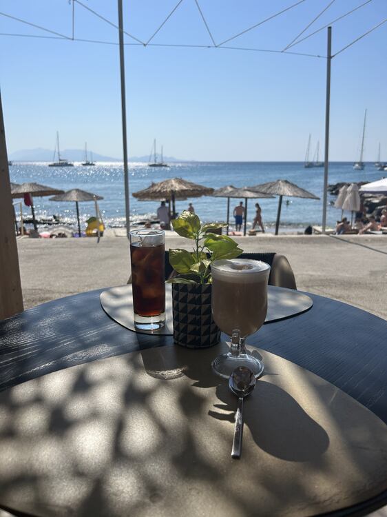 Woda absolutnie bajeczna, unosi, mocno zasolona:) w każdej pozycji pieści:) Jakiś Grek do mnie : co chcesz:) oni się uczą po polsku:) Drineczki na plaży:)