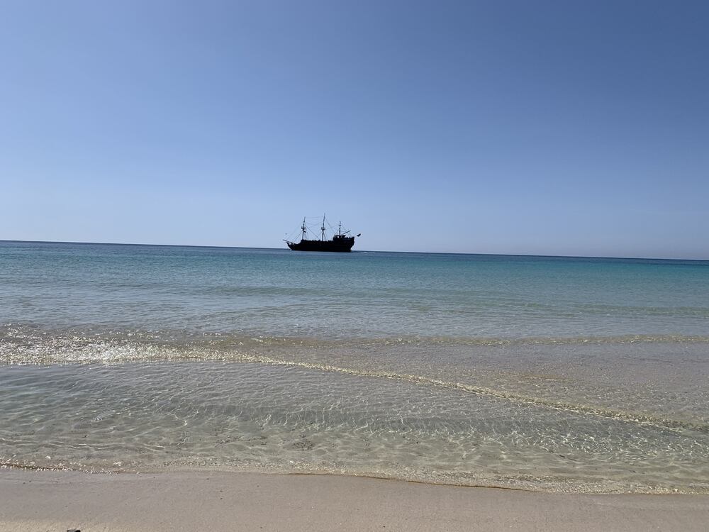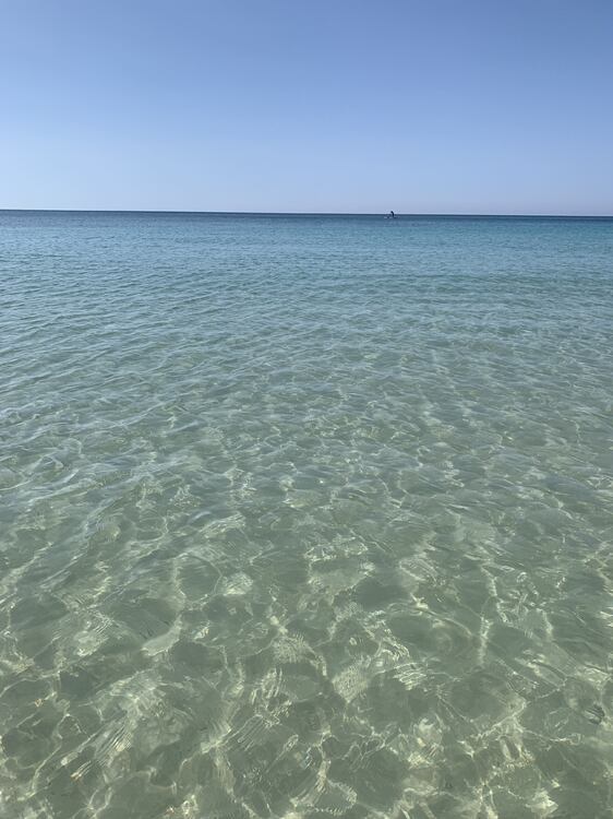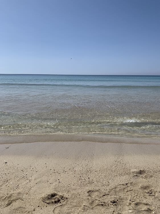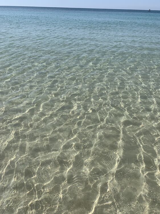 Dzisiaj jest spokojne morze, prawie bez fal, ale przyszła jedna i mnie zmyła :) te dale przerzucają piasek pod wodą, jest miękki, zapadający się wręcz pod nogami:)