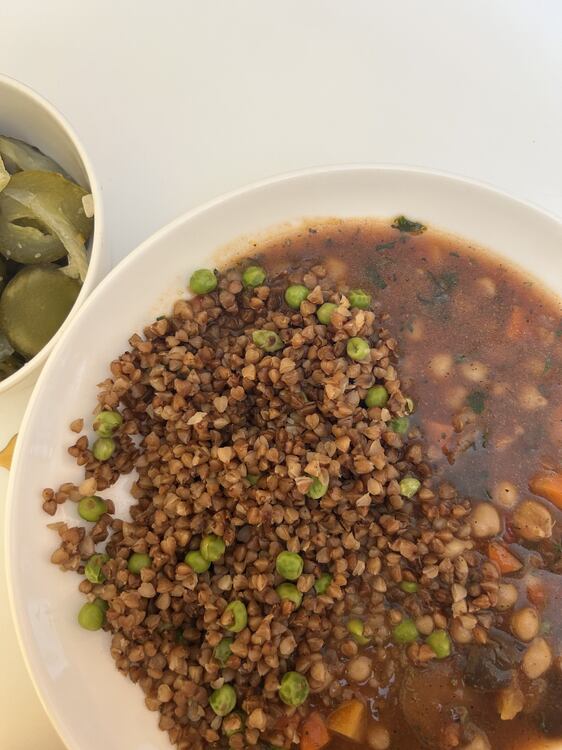 5. Mój obiadek:) zupa z ciecierzycy udaje sos:) zamiast pomidorów i kartofli, spróbuj kasz i kwaszonych ogórków:)