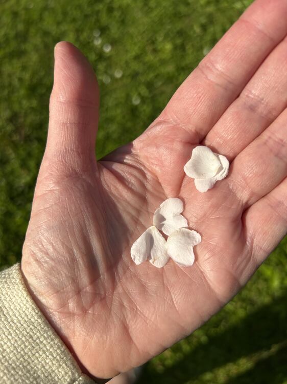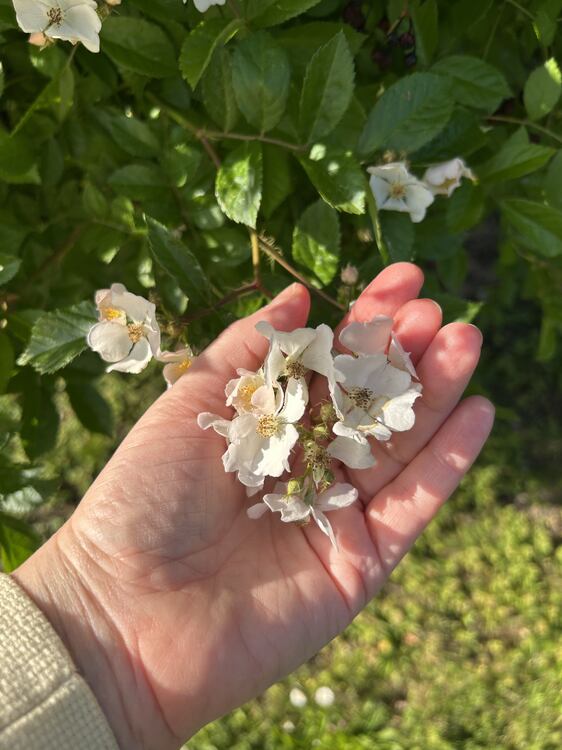 chodzę po głazach gdzie błękitna woda kaskadowo spływa wokół kolorów fioletu jasnego zachodu skrzydła ptaka mgły przebijam się jego głębią promieniami zmieniając w pudrowy pączek róży Dzika róża zbieram białe sercowe płatki delikatne jak bibułka w dłoni a pod falbanką chroniona liną nie tracę swojej łagodności spleciona w koku czerpię siłę