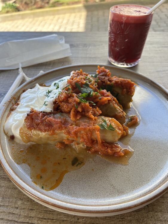 Dzisiaj u Ukraińca zjadłam pyszne, aromatyczne curry, wzięłam w wersji bez kurczaka, lemoniada lub woda czy inny napój zawsze gratis. Jedzenie i kawy egzotyczne w smaku, smoothie, soki, desery wegańskie, brownie z wisienką, kocha leśne owoce i przeplatają się w jego daniach. Jest też fajną herbaciarnia, pyszne świeże soki, praktycznie ze wszystkimi smakami i egzotyczne sałatki.