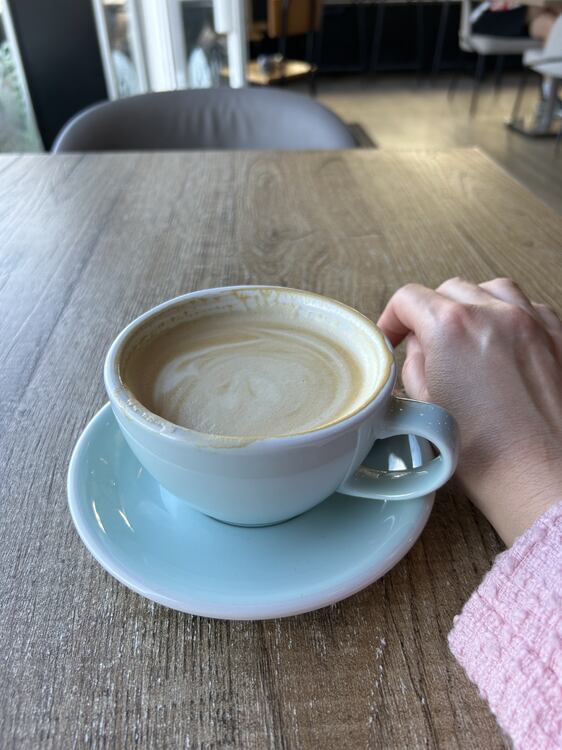 Po tych perypetiach śniadaniowych, pyszna latte:) w hotelu czuję jak w sanatorium:) teraz to już pojadę do jakieś starej willi ze śniadaniem z dowozem:) jedzenie w hotelu takie sobie, tylko nadrabiam ogórkami, sałatą i papryką oraz owocami:) jeszcze solone masełko jest ok:) Dzisiaj to chłodniejszy wiatr:) ale słońce świeci:)