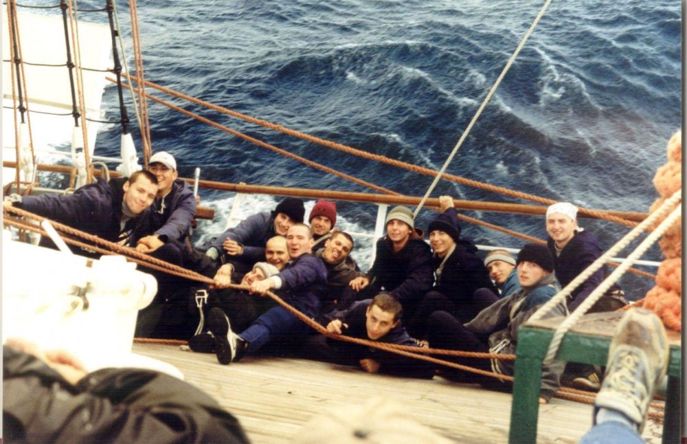 Ryk wiatru i ściana wody gna weź oddech smak soli masz na ustach test woli czy radę sobie dasz "Do lin!!" krzyk, gwizdki, głos bosmana "I razz! " więc ciągniesz ile sił "I RAZZ!" ogłusza jego krzyk znów szarpiesz choć lina tnie do żył. Ryk wiatru, kolejna wody ściana, a z nią kolejny kompan twój. I znów: krzyk, gwizdki, głos bosmana "Trzymać!! Nie puszczać ani krzty!!" I pędzi w szaleństwie stara dama a na pokładzie zwycięsko stoisz ty. 2001