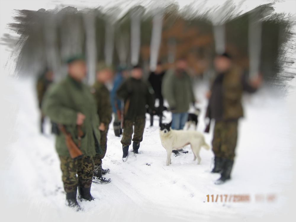 Miot – obszar lasu, najczęściej prostokąt ograniczony drogami, ścieżkami, rzeczkami, opolowywany podczas jednego pędzenia. Pędzenie – wypłaszanie przez nagankę zwierzyny z miotu, na linię myśliwych. Loftka – nabój z kilkoma kulkami, 6 – 9 sztuk w zależności od kalibru broni. Zabroniony w myślistwie. Na dziki poluje się indywidualnie z podchodu, z zasiadki albo zbiorowo. Wówczas brałem udział w polowaniu zbiorowym. Był styczeń, ale bezśnieżny i przeczesywaliśmy na ślepo miot za miotem. Gdyby był śnieg, moglibyśmy najpierw go obciąć, czyli obejść i sprawdzić czy do środka nie prowadzą jakieś ślady watahy. Jeśli jest wejście, a nie ma wyjścia to wiemy, że w miocie są dziki. Dopiero wtedy prowadzący rozstawia ludzi, a do środka wchodzi jeden czy dwóch podkładaczy z psami – jako naganiacze - i zaczyna się najważniejsza część zabijania. Tamten miot miał był ostatnim w owym dniu. Ba, w całym sezonie. Przydzielono mi dobre stanowisko na winklu, w niewielkim rozdołku, gdzie była spora szansa, że jeśli dziki zaległy w środku, to ruszone odbiją na mnie i będą miał szanse strzelać ze swojego sztucera. W nagankę poszedł Wiesiek i Wituś, każdy z nich miał po dwa psy do podkładania. Obserwowałem ich i widziałem jak wchodzą z leśnej drogi w młodą świerczynę, znikają mi z oczu, a po chwili usłyszałem gwałtowny, wysoki, zaciekły jazgot, a moment później huk wypalającej strzelby. Padły dwa strzały, jeden po drugim, i na chwilę zaległa cisza. Ruszyłem. Świadomie łamałem regulamin, ale ponad wszystko zapragnąłem tam być, uczestniczyć, a nie stać bez ruchu i czekać na łut szczęścia, że coś wyjdzie akurat na mnie. Dotarłem do miejsca, gdzie weszli w las, i przystanąłem. Uspokoiłem oddech i zacząłem nasłuchiwać. Nic. Cisza. I raptem znowu odezwały się psy, niedaleko przede mną, zacząłem przedzierać się przez gęstwinę aż wydostałem się na rzadziej porośnięty kawałek lasu. Stanąłem by się zorientować w sytuacji, psy ujadały już ciągle, musiały coś dopaść i naraz zobaczyłem je. Dziki! Jeden, drugi… trzeci, biegały ganiane przez osaczające je psy, nieduże, przelatki, i wtedy kanonada z dwóch dubeltówek zagłuszyła wszystko a kiedy ucichła, słyszałem tylko przeraźliwe kwiczenie rannych zwierząt i psy zamilkły. Wprowadziłem nabój do komory, załadowałem i krzyknąłem, że idę. Krzyknąłem raz, potem drugi, ktoś mi odkrzyknął, zawołał bym uważał, bo idą na mnie, doszło mnie chrapliwe chrząkanie dużego dzika za ścianą gęstego młodnika, próbowałem ustalić kierunek, zlokalizować, naraz psy odezwały się znowu, wysokie, zajadłe ujadanie dobiegało z kilku miejsc jednocześnie, trzaskały gałęzie, zwierzęta przeciskały się przez zarośla, ale nie widziałem żadnego. Padł kolejny strzał, kolejny, rozległo się kwiczenie trafionego zwierzaka, psy wciąż ujadały cienko i wściekle, oszczekując watahę, zrobił się wielki zamęt, a nad nim górowało ciężkie warczenie lochy. Znów strzały, blisko, bardzo blisko, już widziałem składającego się Witusia, wywalił dwa razy i poczułem że muszę tam podejść, jeśli mam dojść do strzału. Przebiłem się przez świerczynę do tamtych, wydostałem się na maleńką polankę i naraz zobaczyłem przemykającego średniego dzika, walnąłem do niego z przyrzutu, przeładowałem, namierzyłem następnego, złożyłem się i strzeliłem gdy muszka siadła mu na komorze, dzik wpadł w gęstwinę, rozglądałem się za następnym, zwierzaki śmigały gąszczu, za nimi psy próbujące je osadzić na zadach, było wielkie zamieszanie, hałas, kwik, trzaski i trudno było się złożyć, psy wyskakiwały na linie ognia, zasłaniały sobą rozbiegane dziki, gdy te wciskały się w gęstwinę, by się od nich uwolnić chociaż na chwilę. Zobaczyłem naraz przed sobą Wieśka, składał się starannie, powędrowałem spojrzeniem za linią lufy jego strzelby i ujrzałem wielkiego dzika wchodzącego między niską świerczynę. Wiesiek wypalił, dzik szedł dalej jakby nie przyjął kuli, więc teraz ja się złożyłem, starałem się ulokować muszkę na karku, dzik odchodził, już prawie znikał wśród niskich gałęzi, strzeliłem, przeładowałem, zwierz przysiadł na zadzie, odpuściłem go i zacząłem rozglądać się za innymi, gdy znowu zza ściany młodnika rozległy się strzały, zakwiczał trafiony w kręgosłup przelatek. To była robota Witusia.. Psy przebiegły mi pod nogami, wpadły pod rozłożystego świerka i osaczyły tam następną sztukę, głęboko pod niskimi konarami, przyklęknąłem żeby dojrzeć cokolwiek, minął mnie Wiesiek, zabiegał z boku, wpychał do luf nowe naboje, widziałem jak zamyka broń, ustawia się po drugiej stronie odcinając dzikowi drogę ucieczki, złożyłem żeby mieć go muszce gdyby się wyrwał od psów, Wiesiek zaczął się drzeć do mnie żebym nie strzelał, bo psy, odkrzyknąłem że wiem, uważam, dzik wreszcie ruszył, wybiegł na niego i dostał do boku, zwalił się w ogniu i naraz wszystko ucichło. Chwilę potem spod rozłożystego świerka odezwał się kwik dziczka, siedział na zadzie z przetrąconym kręgosłupem, a dwa psy skubały go po bokach. Wituś podszedł, odepchnął nogą jednego psa i sięgnął po nóż. Rozłożył go, po czym nachylił się i podciął dzikowi gardło, ten ucichł. Psy biegały jeszcze w kółko, zdyszane, w każdym możliwym kierunku, przeczesywały teren, wpadały pod nisko wiszące gałęzie, wypadały, lecz nic już nie było. Pojawił się Wituś. · Zabiłeś tamtego? – zapytał go Wiesiek. · Nie wiem. Jeden leży, ale drugi poszedł w waszą stronę. · Ja go chyba zgoliłem. · Do ilu strzelałeś? · Do trzech. Dwóch małych i tego wielkiego. · Do lochy? · To była locha? · A jak myślisz? · No to strzelałem do niej. · Widziałem, po moim strzale. Dostała do b