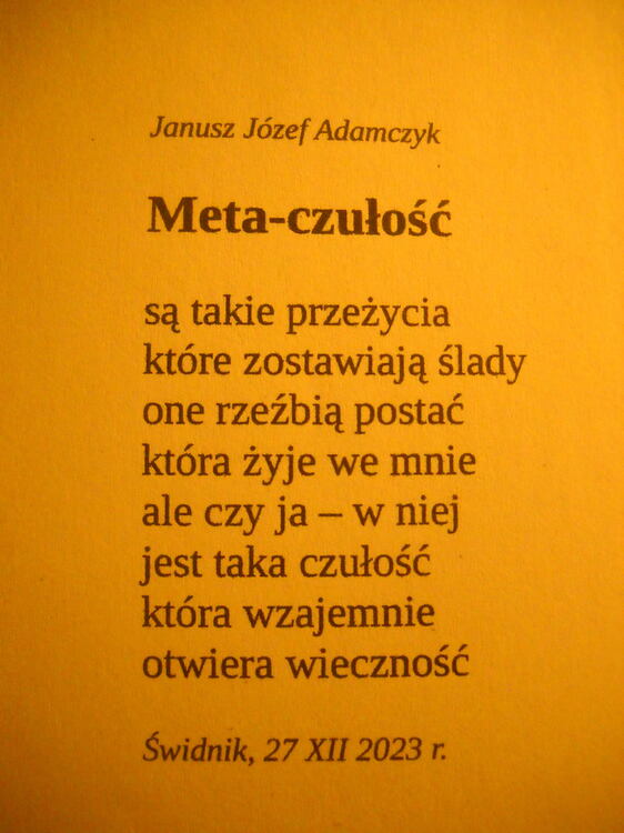 pochyleni nad doczesnymi szczątkami wpatrzeni w kwiaty i w płomień zniczy może nie do końca świadomi że tam - gdzieś w górze jest istota ludzkiego bytu - dusza ona może już od dawna czeka na to jesienne z tobą spotkanie może to będzie pierwsza rozmowa a może dokończenie ostatniej może popłyną gorące łzy i przyjdzie nagłe olśnienie że Miłość jest Płomieniem - Wiecznym Płomieniem by po raz drugi się narodzić. Janusz Józef Adamczyk