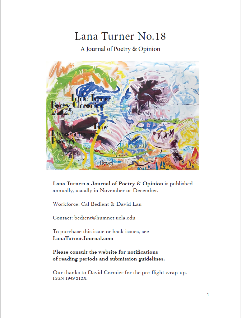 USA. Lana Turner Journal. Nie wiem, jak teraz, 2 lata temu w pierwszej 25 najlepszych literackich magazynów amerykańskich spośród 270 -290 wszystkich. Wychodzi raz w roku. John Ashbery tutaj też publikował. Udało się i mi. Miłe. Pododno od Mickiewicza Amerykanie około 150 Polaków opublikowali, więc tym bardziej jestem dumny. Spełniłem marzenie - nie wiem, czy chcę dalej pisać, być może nie, zawsze mówiłem, że po opublikowaniu mnie w dobrym magazynie w USA nie będę widział sensu pisania :). Gdyby ktoś chciał się zapoznać z magazynem - zachęcam.